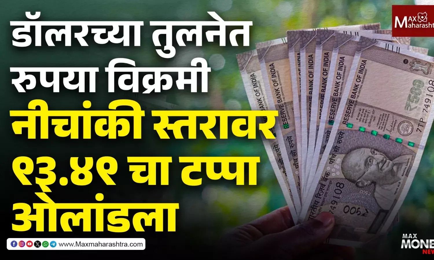 डॉलरच्या तुलनेत रुपया विक्रमी नीचांकी स्तरावर ९३.४९ चा टप्पा ओलांडला