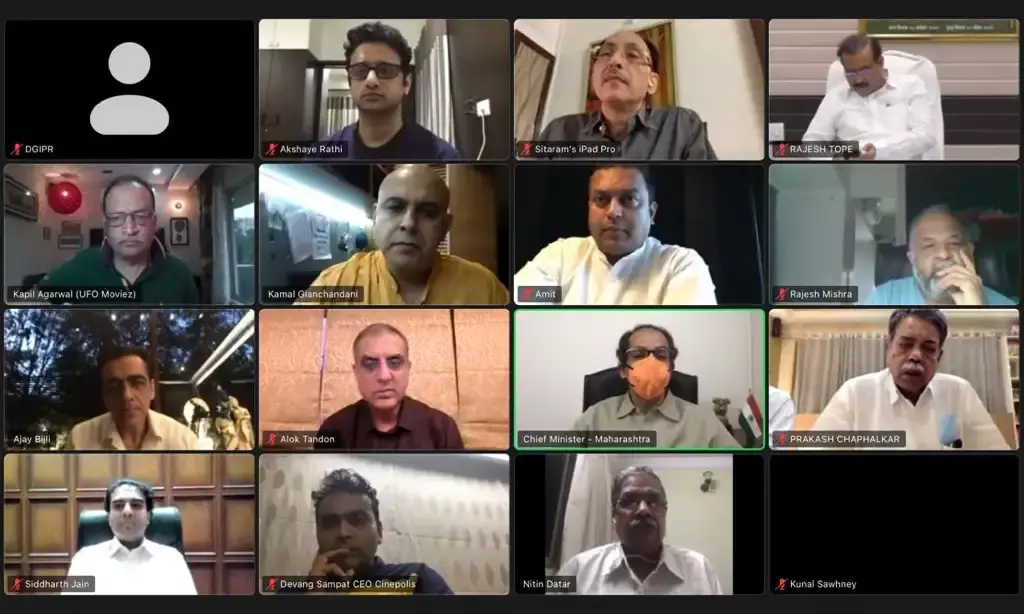 मुख्यमंत्री उद्धव ठाकरे यांनी आज वर्षा या शासकीय निवासस्थानातून मराठी नाट्य निर्माता संघ तसेच त्यानंतर राज्यातील मल्टिप्लेक्स आणि चित्रपटगृह चालक-मालक संघटनेच्या प्रतिनिधींशी दूरदृश्य प्रणालीद्वारे संवाद साधला. यावेळी आरोग्य मंत्री राजेश टोपे, सांस्कृतिक कार्य मंत्री अमित देशमुख, मुख्य सचिव सीताराम कुंटे, आरोग्य विभागाचे प्रधान सचिव प्रदीप व्यास, मुख्यमंत्र्यांचे प्रधान सचिव विकास खारगे, वैद्यकीय शिक्षण विभागाचे सचिव सौरव विजय आदी सहभागी झाले.
