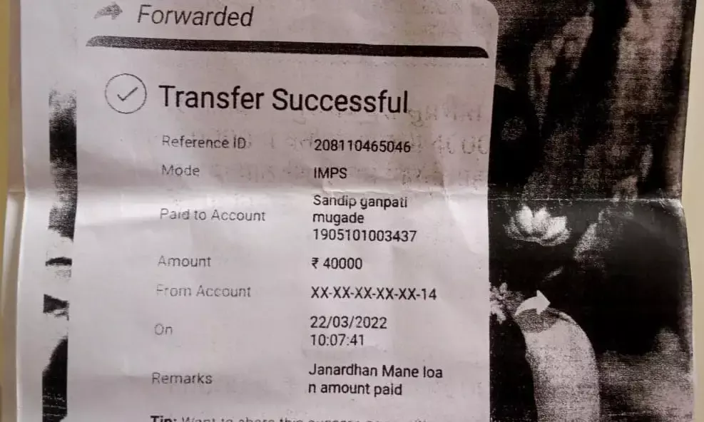 घेतलेली रक्कम बँकेत भरल्याची पावती त्याच मित्राच्या वॉट्सप नंबर वरून पाठवली. पण बँकेत चौकशी केल्यानंतर त्या कर्जाचा एकही रुपया जमा झाला नसल्याचे शेतकऱ्याला विटा शाखेने सांगितले. यानंतर ज्या शाखेच्या पावत्या संबंधित शेतकऱ्याला देण्यात आलेल्या होत्या शेतकऱ्याने ती कोल्हापूर येथील लक्ष्मीपुरी येथील बँक गाठली. तेथे या पावत्या दाखवल्यानंतर या पावत्या बोगस असून तुमच्यावरच गुन्हा दाखल करतो असे त्या शेतकऱ्याला सांगण्यात आले. आपली फसगत झाली आहे हे लक्षात आल्यानंतर त्या शेतकऱ्याने बँक ऑफ इंडिया शाखा विटा येथील मॅनेजर सोबत संपर्क साधला. तर तुम्ही बाहेर पैसे भरले आहेत त्यामुळे ही तुमची जबाबदारी आहे. तसेच कुठे तक्रार करू नका आम्ही सदर व्यक्तीला बोलावून घेतो असे सांगण्यात आले. परंतु अद्याप पर्यंत या शेतकऱ्याची दखल घेण्यात आलेली नाही.