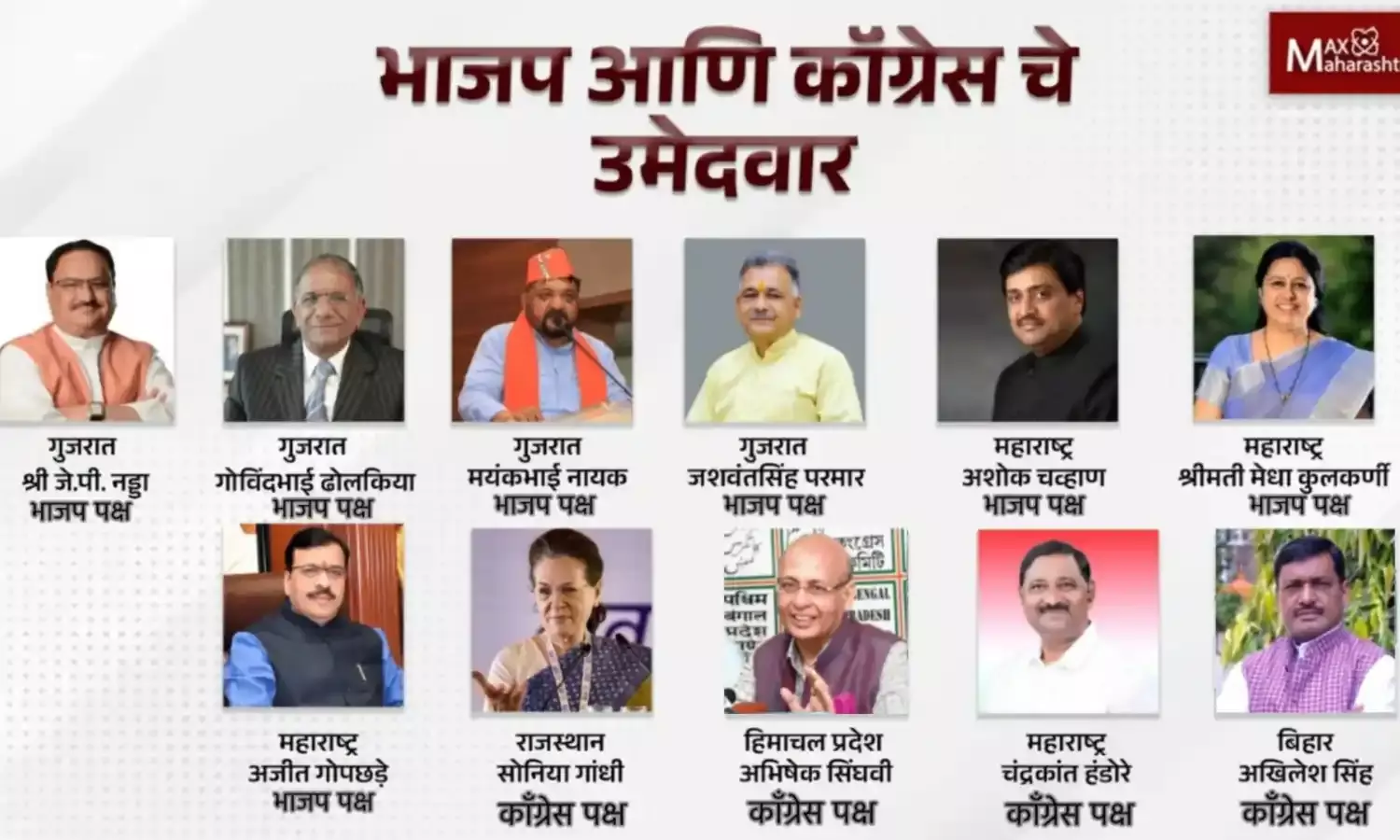 त्याचबरोबर, काँग्रेसकडून देखील राज्यसभा निवडणुकीसाठी उमेदवारांची यादी जाहीर करण्यात आली आहे. महाराष्ट्रातून काँग्रेससाठी (Maharashtra Congress) चंद्रकांत हांडोरे (Chandrakant Handore),राजस्थानमधून सोनिया गांधी, बिहारमधून आखिलेश सिंह आणि हिमाचल प्रदेशमधून अभिषेक सिंघवी यांना राज्यसभेच्या रिंगणात उतरवण्यात आलं असून अजित पवार गट, उद्धव ठाकरे गट आणि शरद पवार गट कोणाला उमेदवारी देणार? हे पाहणं महत्त्वाचं ठरेल. एवढंच नाही तर निवडणूक बिनविरोध होण्यासाठी बैठकांचा सपाटा देखील लागू शकतो.