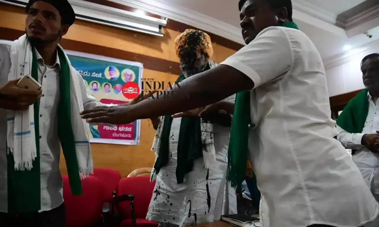 Ink thrown on Rakesh Tikait by a man in Bengaluru, while the man was chanting Modi Modi !! pic.twitter.com/urwTewSQsF