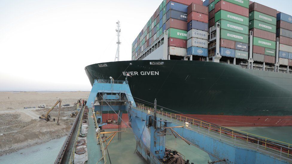 मंगळवारी सुवेझच्या कालव्यातून जाताना नियंत्रण गमावल्याने ४०० मीटर लांब आणि ५९ मीटर रुंद आणी 200,000 टन वजन असणारे हे महाकाय एवर गिव्हन जहाज अडकले होते. मालवाहतूक करणाऱ्या जहाजाला बाहेर काढण्यासाठी मोठ्या प्रमाणावर टग बोट्स (जहाजांना धक्का देणाऱ्या शक्तिशाली जहाज) तैनात करण्यात आल्या होत्या.