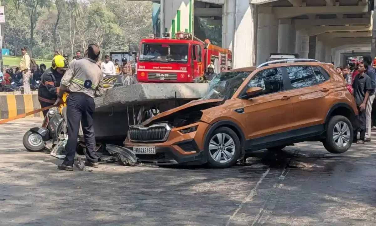 Metro Slab Collapse in Mulund West मुंबईतील मुलूंड पश्चिम भागात आज दुपारी भीषण दुर्घटना घडली. LBS मार्गावर (एल.बी.एस. मार्ग) मेट्रो लाइन ४ च्या बांधकामादरम्यान एक मोठा काँक्रीट स्लॅब (पॅरापेट वॉलचा भाग) अचानक कोसळला. हा स्लॅब थेट रस्त्यावरून जाणाऱ्या एका रिक्षा आणि स्कोडा कारवर rickshaw and Skoda car पडला, ज्यामुळे एका व्यक्तीचा मृत्यू झाला असून तीन ते चार जण गंभीर जखमी झाले आहेत.