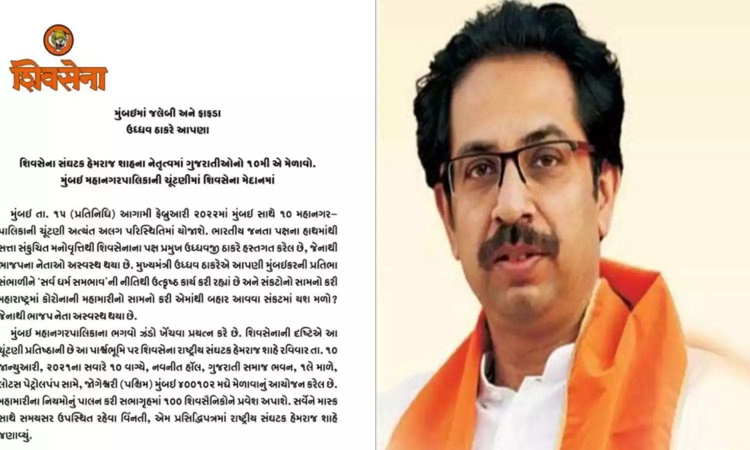 मुंबई महानगरपालिकेच्या आगामी निवडणुकीच्या पार्श्वभूमीवर सर्व राजकीय पक्षांनी शड्डू ठोकला असताना भाजपला प्रत्युत्तर देण्यासाठी शिवसेनेने आता गुजराती कार्ड बाहेर काढलं आहे.'मुंबई मा जलेबी ने फाफड़ा उद्धव ठाकरे आपडा, गुजराती भाषेत साद घालत शिवसेना संघटक हेमराज भाई शाह यांच्या नेतृत्वात गुजराती बांधवांचा येत्या 10 जानेवारीला तारखेला खास मेळावा आयोजित केला आहे. सेनेच्या या गुजराती पँटर्नला भाजप काय उत्तर देते याकडे आता लक्ष लागले आहे.