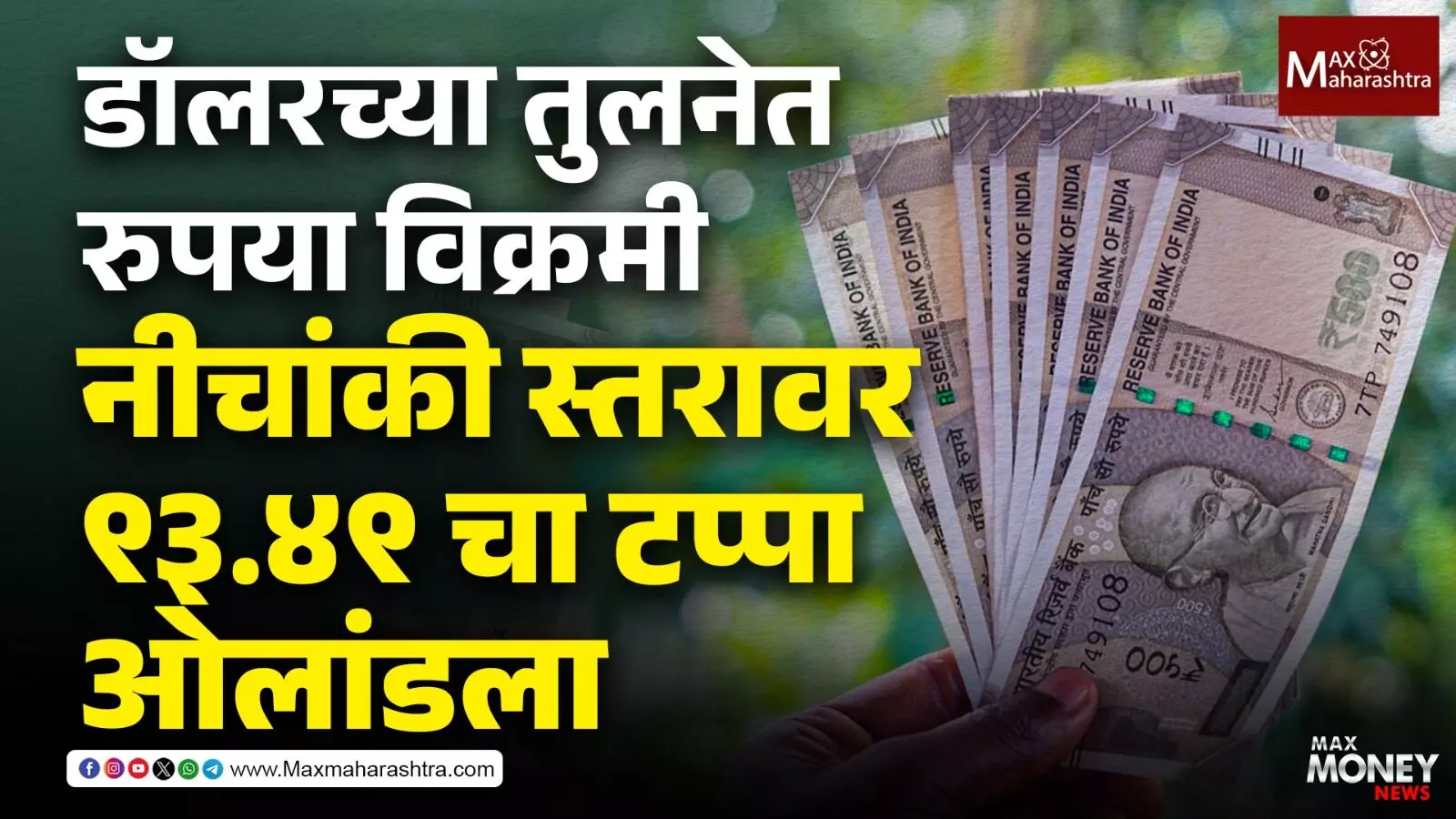 डॉलरच्या तुलनेत रुपया विक्रमी नीचांकी स्तरावर ९३.४९ चा टप्पा ओलांडला