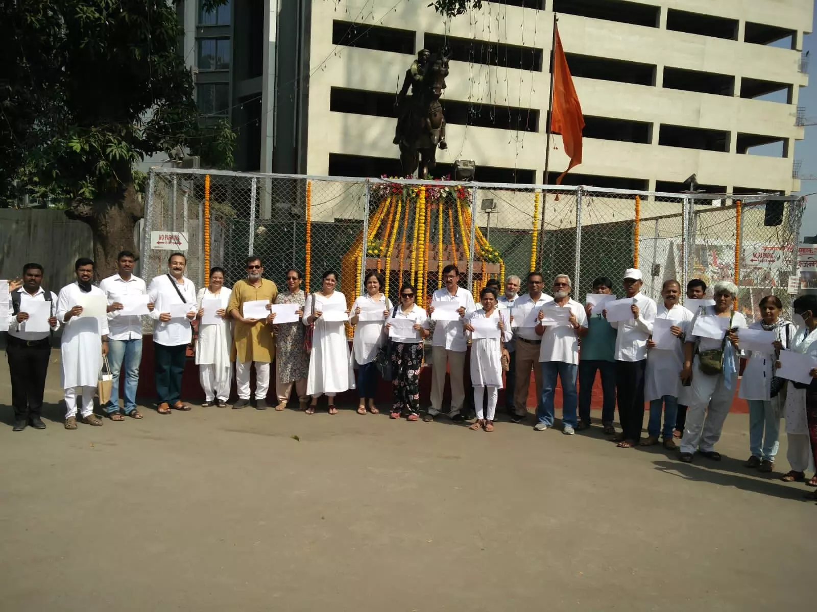 या विचारातून महाराष्ट्र दिन आणि कामगार दिनाच्या निमित्ताने मुंबईतही अनेक ठिकाणी छत्रपती शिवाजी महाराज यांच्या पुतळ्या समोर हातात पांढरा कागद घेवून सामाजिक कार्यकर्ते, वितारवंत, साहित्यिक, कलावंत यांनी मनातील अस्वस्थता शांतपणे उभे राहून व्यक्त केली.