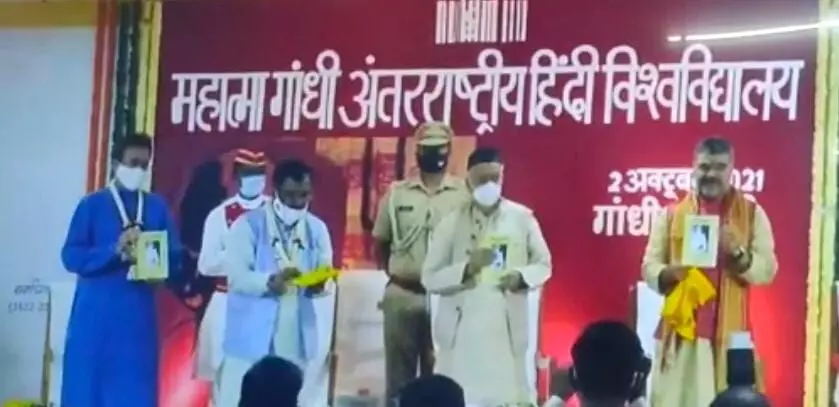 विद्यापीठाच्या कस्तुरबा सभागृहात आयोजित या कार्यक्रमात राज्यपाल भगतसिंह कोश्यारी यांच्यासह प्रसिध्द अभिनेते नितीश भारद्वाज आणि कवि कुलगुरु कालिदास संस्कृत विद्यापीठाचे कुलगुरु श्रीनिवास वरखेडी यांची उपस्थिती होती. तर अध्यक्षस्थानी हिंदी विद्यापीठाचे कुलगुरु रजनीशकुमार शुक्ल होते.