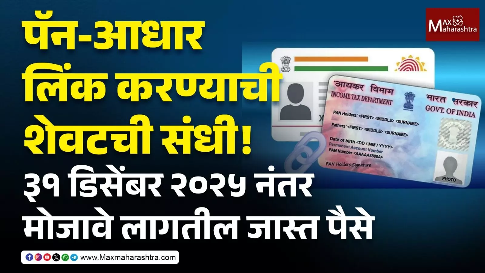 तुम्ही अजूनही तुमचे पॅन कार्ड (PAN) आधार कार्डशी (Aadhaar) लिंक केले नसेल, तर आता तुमच्याकडे फार कमी वेळ उरला आहे. पॅन-आधार लिंक करण्याची अंतिम मुदत ३१ डिसेंबर २०२५ आहे.