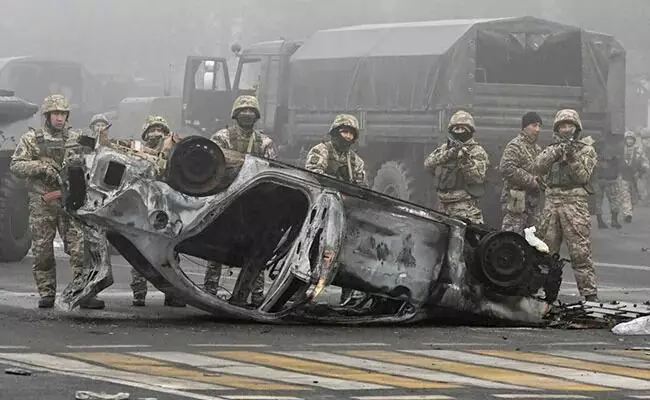 कझाकस्तानमध्ये गेल्या काही दिवसात झालेल्या हिंसाचारात अनेक सरकारी इमारती आणि सरकारी मालमत्तांचे नुकसान झाले आहे. देशातील सगळ्यात मोठे शहर अल्माटी इथे तर आंदोलकांनी विमानतळ ताब्यात घेतले होते. तर शहरात काही ठिकाणी गोळीबार देखील झाला होता. मृतांमध्ये नागरिक किती आणि सुरक्षा रक्षक किती होते याची माहिती अद्याप जाहीर करण्यात आलेली नाही. कझाकस्तानच्या सरकारने या आंदोलनामागे परकीय अतिरेक्यांचा हात असल्याचा दावा केला आहे. पण या आंदोलनाचे नेतृत्व कुणीही करताना दिसलेले नाही. कझाकस्तानच्या परराष्ट्र मंत्रालयाने हे आंदोलन शांततेत सुरू होते पण दहशतवादी आणि गुन्हेगारी प्रवृत्तीच्या लोकांनी यात घुसखोरी करत हिंसाचार केला असा दावा केला आहे.