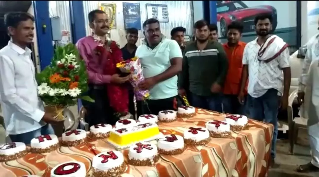 बापरे! 17 केक कापून पोलीस अधिकाऱ्याचा जंगी वाढदिवस साजरा