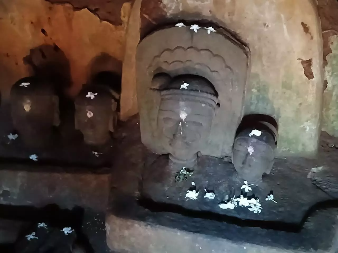 आम्ही सरळ चालत गेलो आणि थोडा खडा चढ चढून गेल्यानंतर एक गुंफा दिसली त्या गुंफेच्या दोन दालनामध्ये बाहेरच्या खोलीवरचे छत पडलेले असावे आणि आतल्या भिंतीवर पिंपळाचे झाड उगवले आहे त्याच्या मुळ्या पसरलेल्या आहेत.